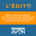 Chère avonnaise, cher avonnais, En mars 2026 auront lieu les prochaines élections municipales. Vous êtes de plus en plus nombreux à me faire part des difficultés que vous rencontrez dans votre vie quotidienne. Vous souhaitez que cela change et qu’une nouvelle équipe...